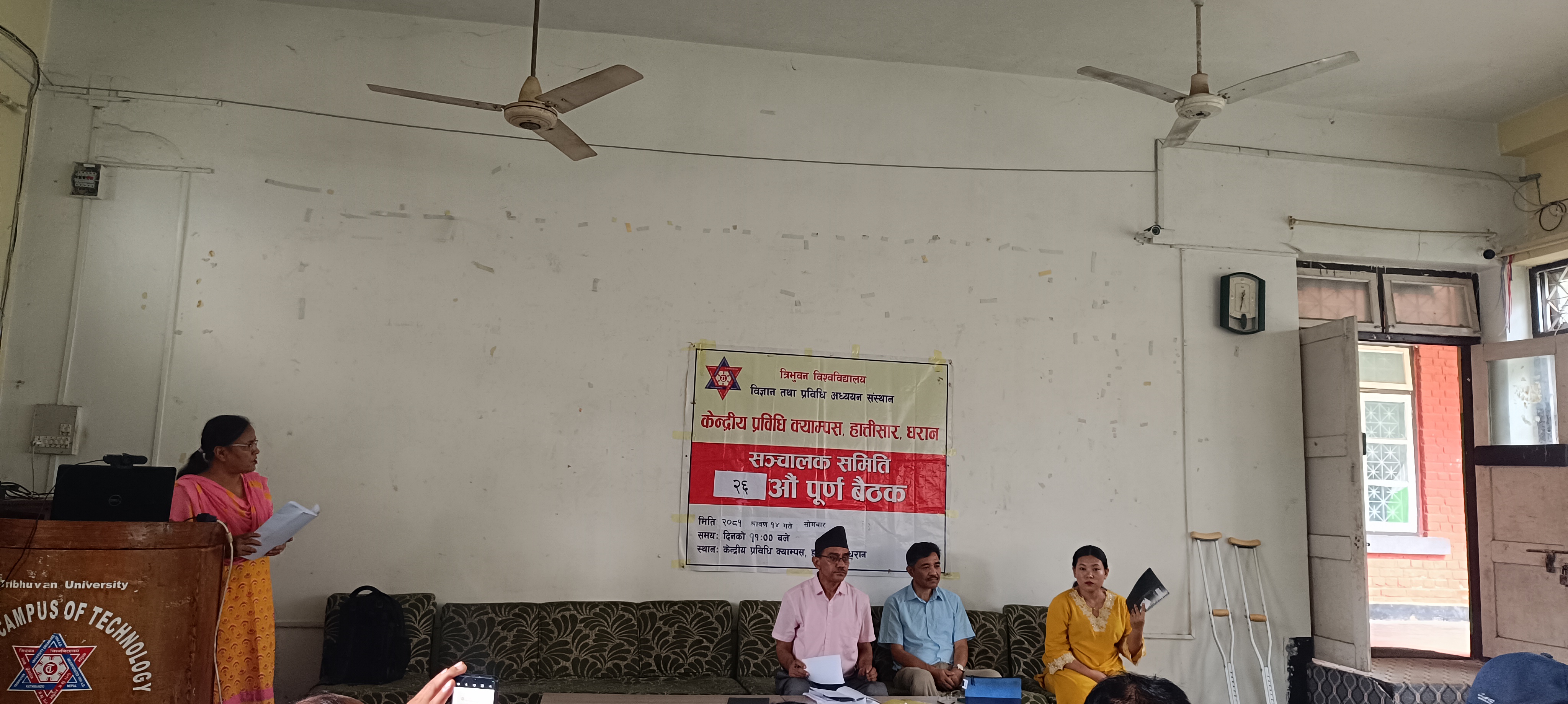 मिति २०८१ साल श्रावण १४ गते क्याम्पस संचालक समितिको २६ औ बैठक समिति सदस्यहरु साथै आमन्त्रित सदस्यहरुको उपस्थितिमा क्याम्पसको Assembly हल भित्र समितिका अध्यक्ष प्रा. डा. धन बहादुर कार्की ज्यूको अधक्ष्यतामा तपसिल बमोजिमका एजेण्डाहरुमा छलफल तथा निर्णय गरि बैठक समापन गरियो |