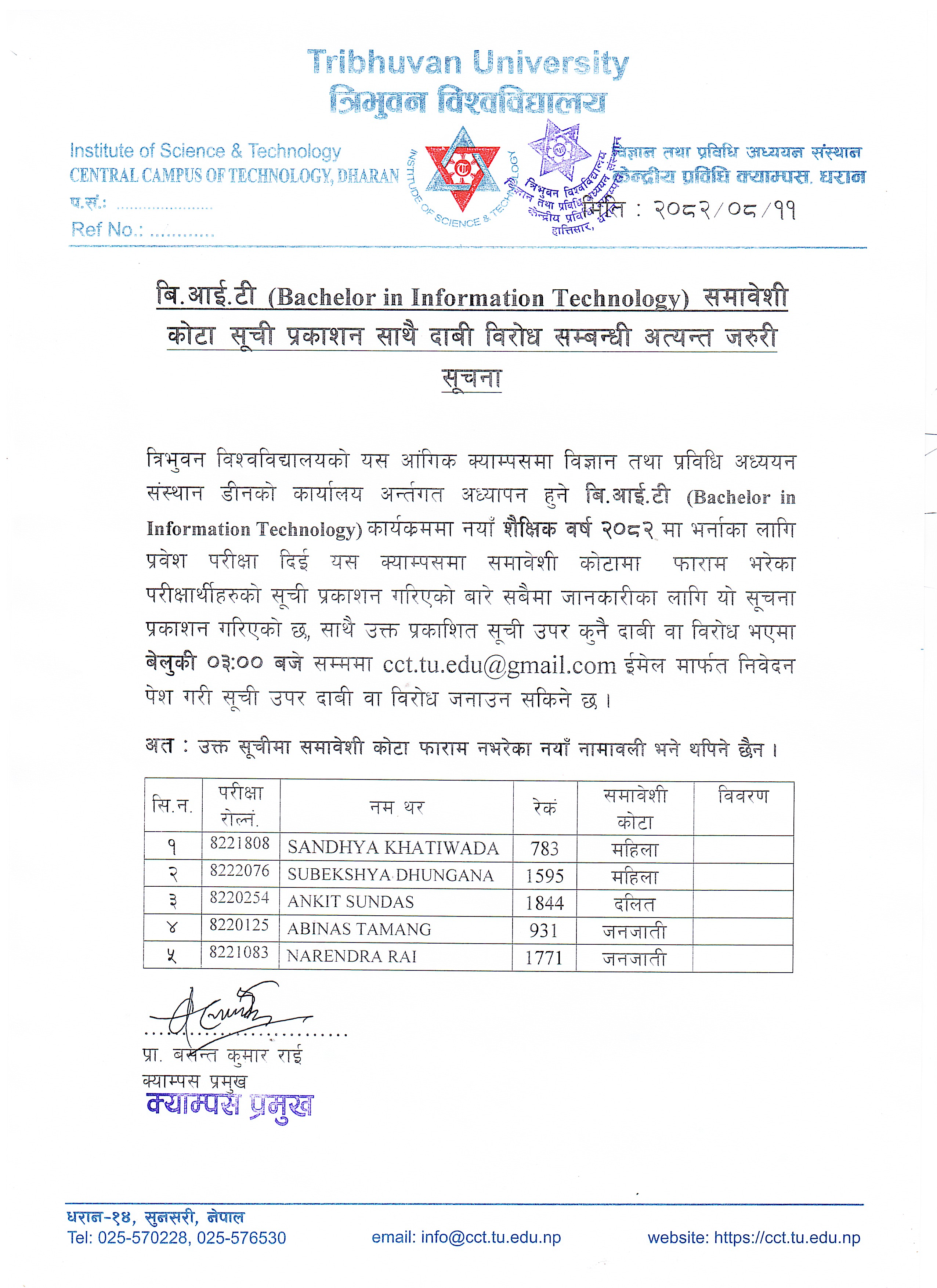 BIT (Bachelor in Information Technology) समावेशी काेटा प्रकाशन साथै दाबी विराेध सम्बन्धी अत्यन्त जरूरी सुचना 2082