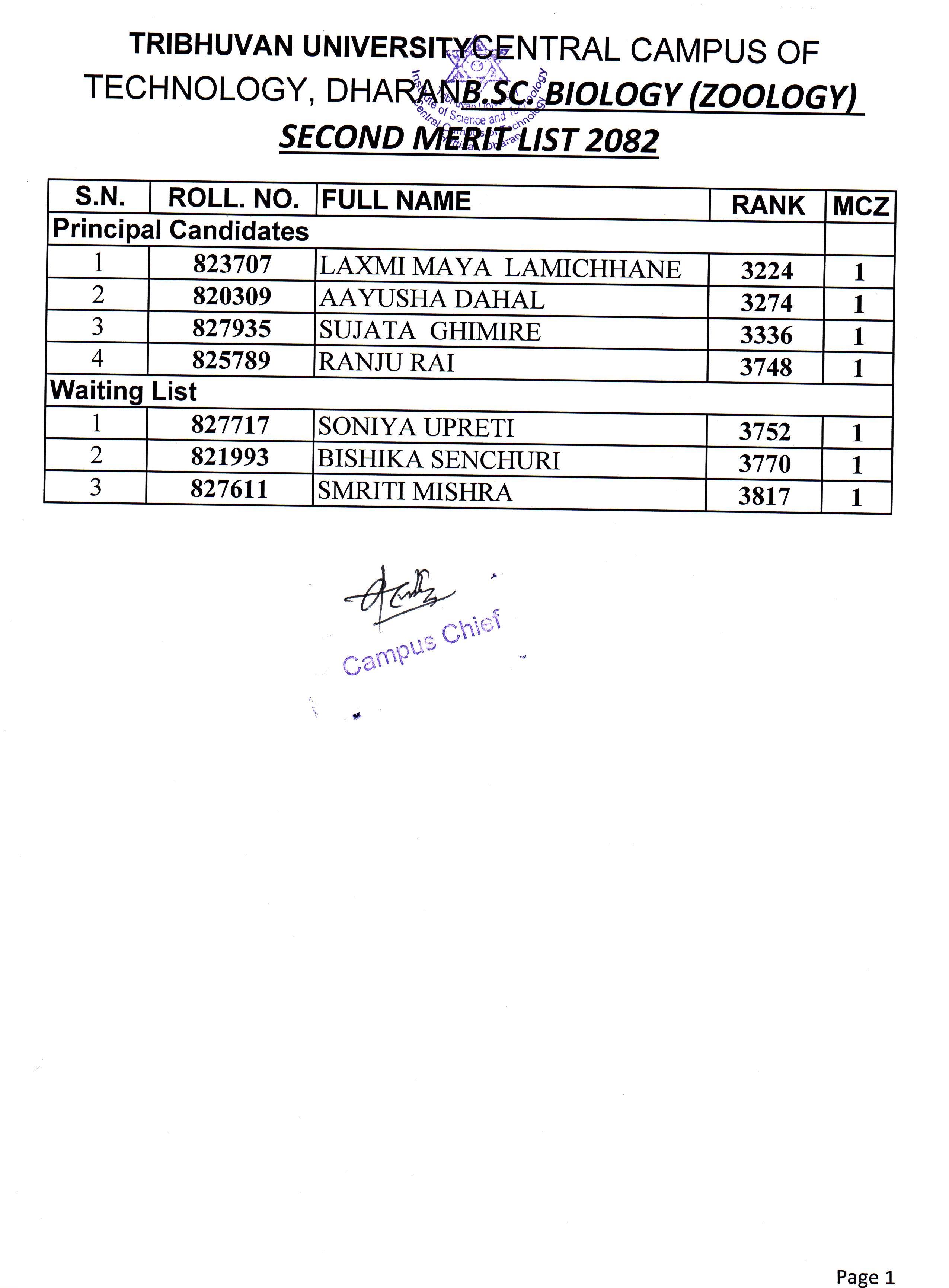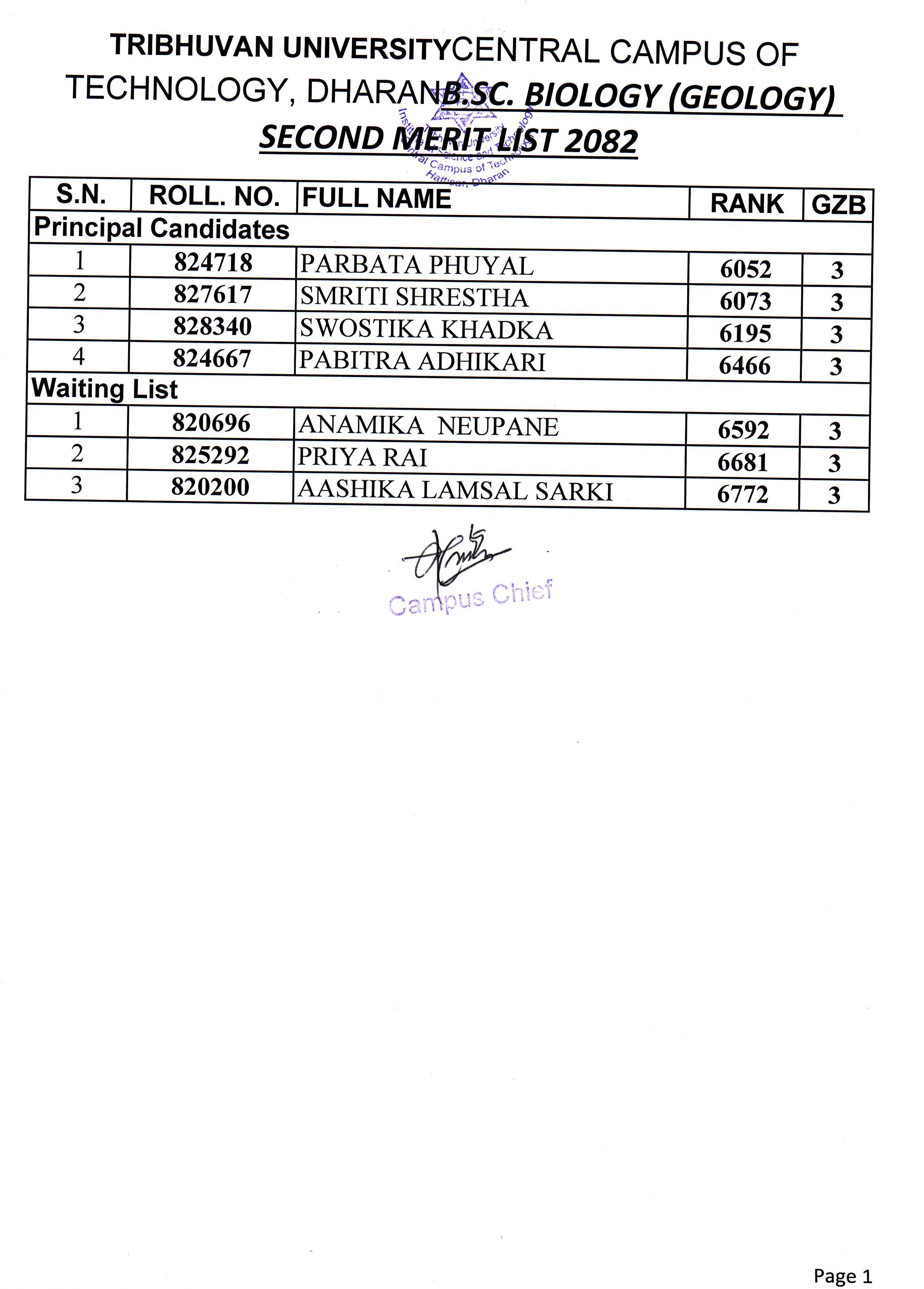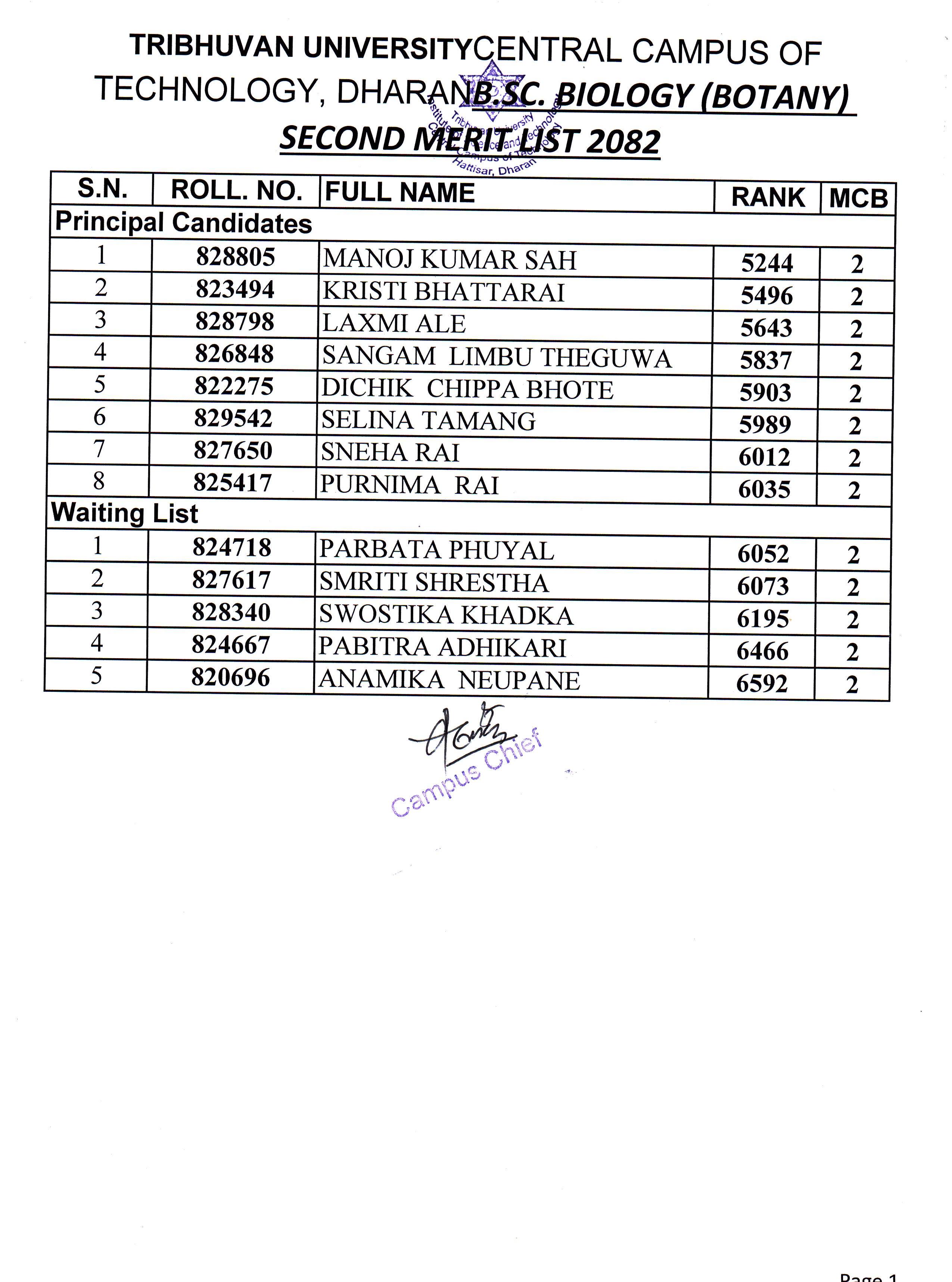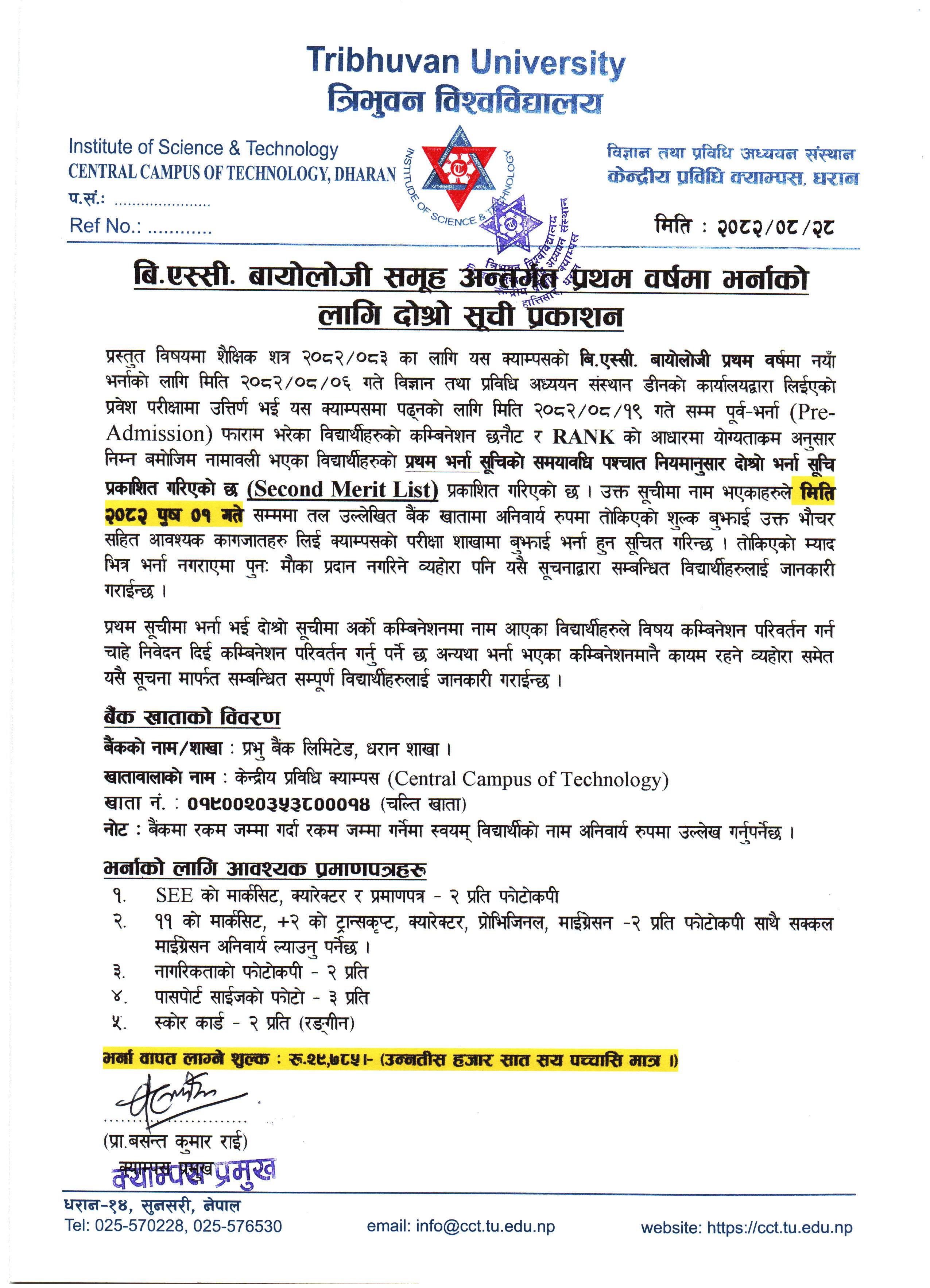 बि.एस्सी. बायोलोजी समूह अन्तर्गत प्रथम वर्षमा भर्नाको लागि दोश्रो सूची प्रकाशन २०८२