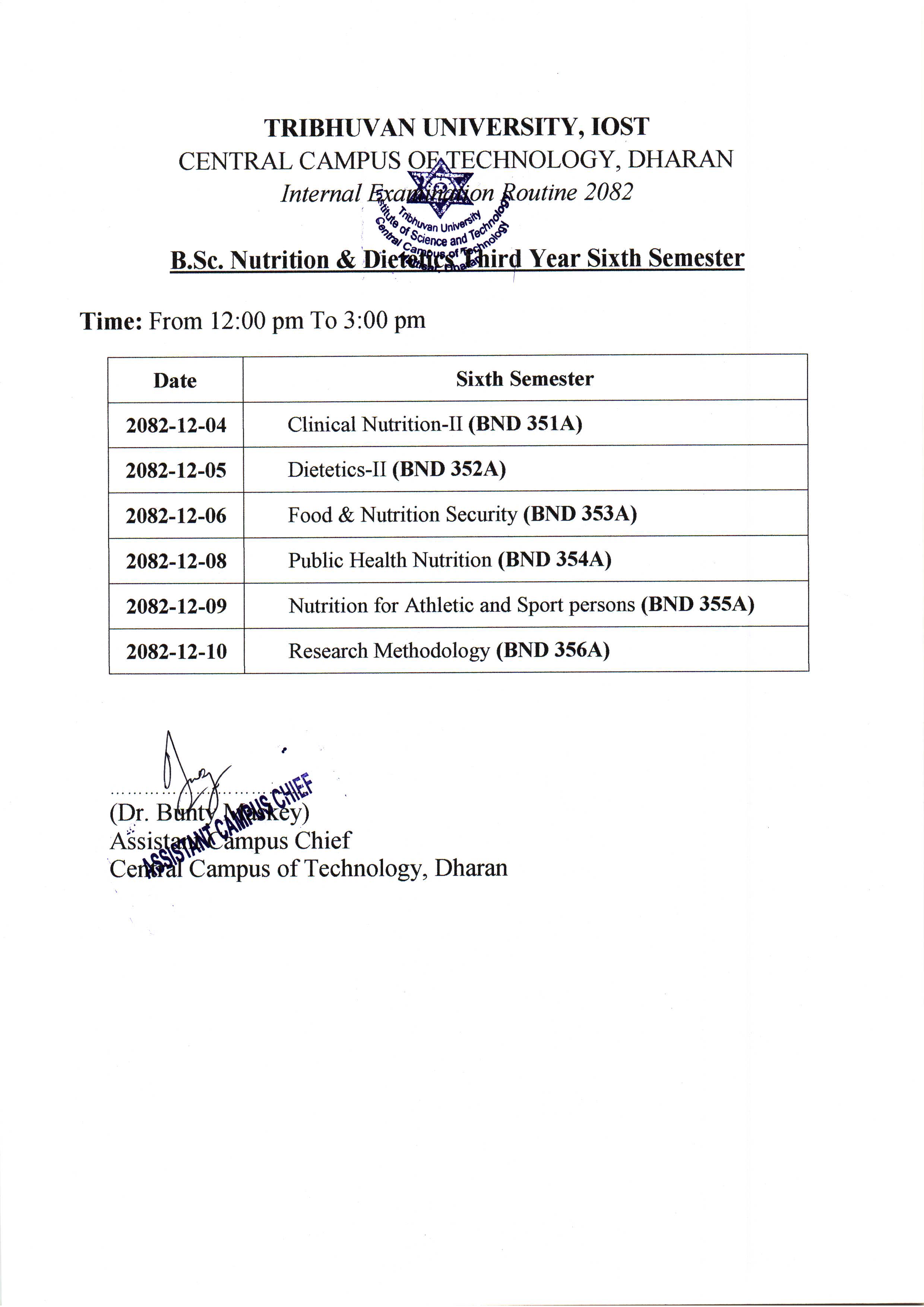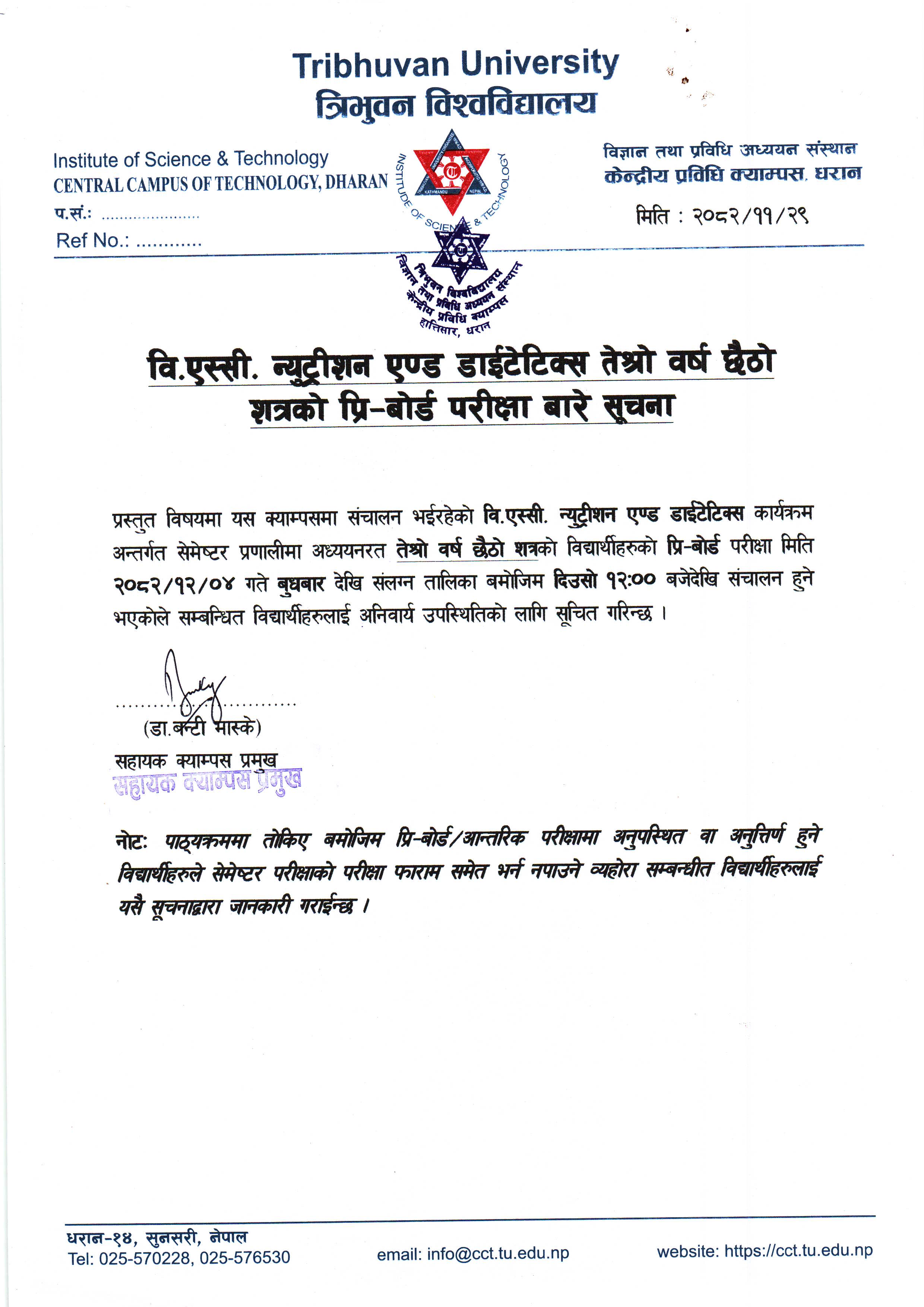 वि.एस्सी. न्युट्रीशन एण्ड डाईटेटिक्स तेश्रो वर्ष छैठो शत्रको प्रि–बोर्ड परीक्षा बारे सूचना २०८२ ।