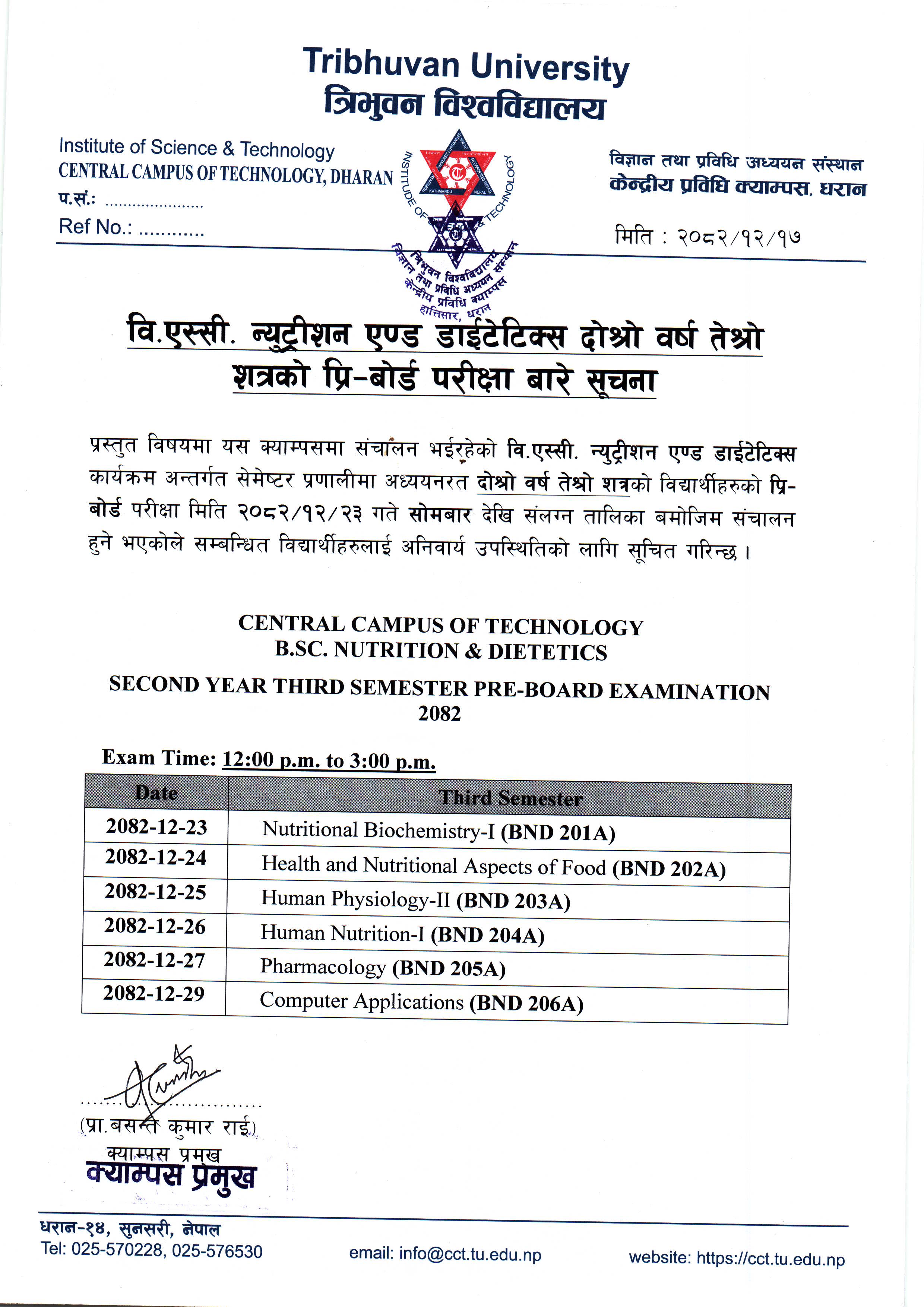 वि.एस्सी. न्युट्रीशन एण्ड डाईटेटिक्स दोश्रो वर्ष तेश्रो शत्रको प्रि–बोर्ड परीक्षा बारे सूचना ।