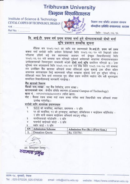 बि.एस्सी. तेश्रो वर्षको भर्ना तथा नियमित कक्षा सम्बन्धी सूचना ।