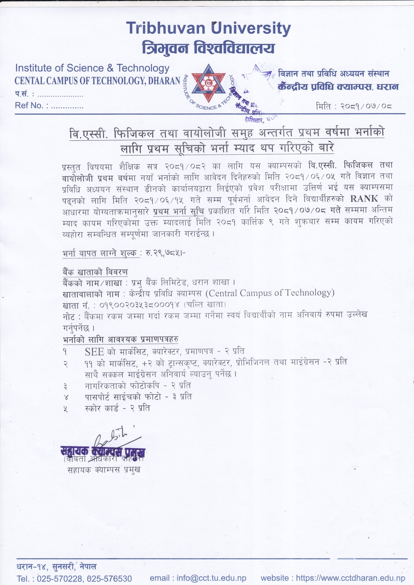 बि.एस्सी. तेश्रो वर्षको भर्ना तथा नियमित कक्षा सम्बन्धी सूचना ।