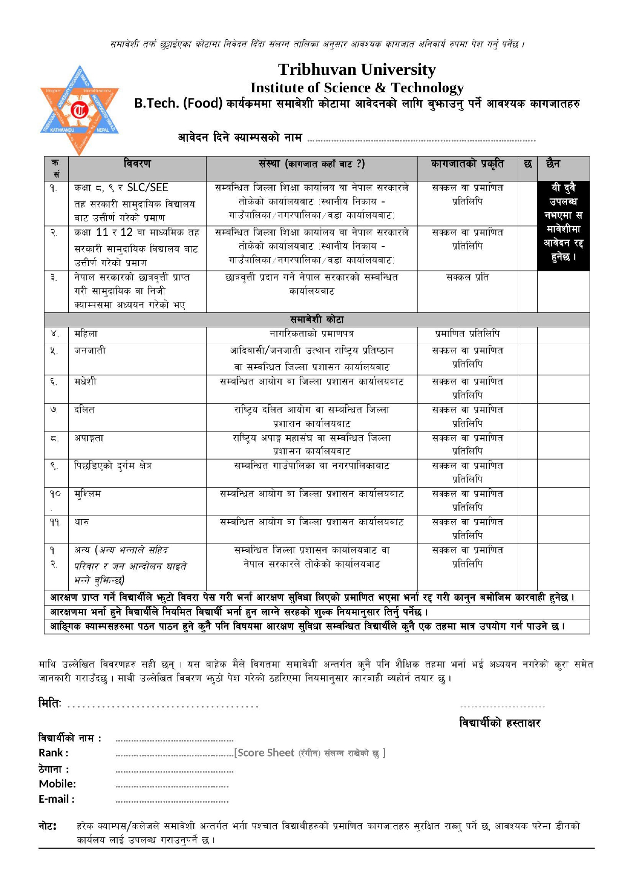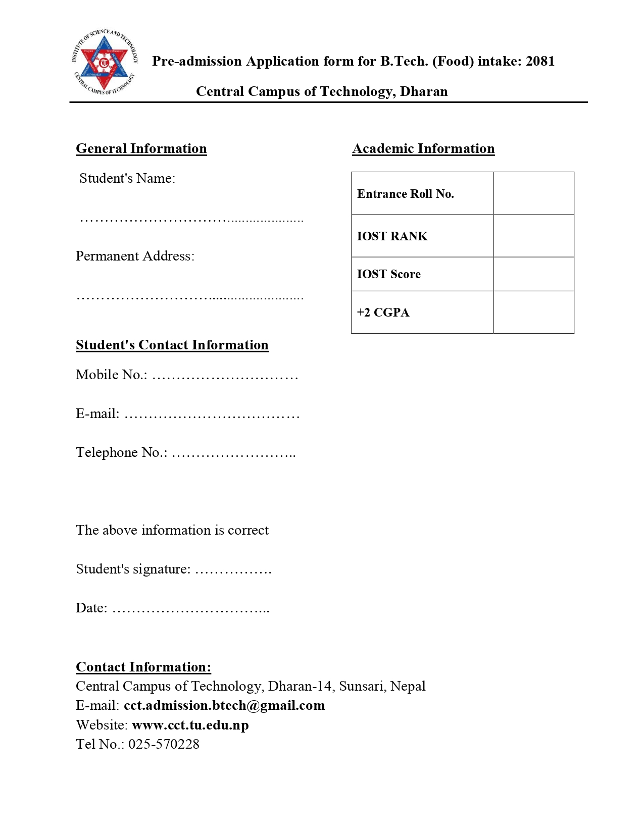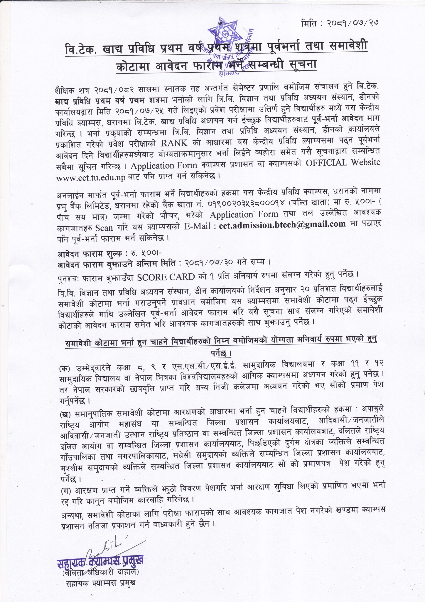 B.Tech(Food) First Year First Semester Pre-Admission Notice 2081