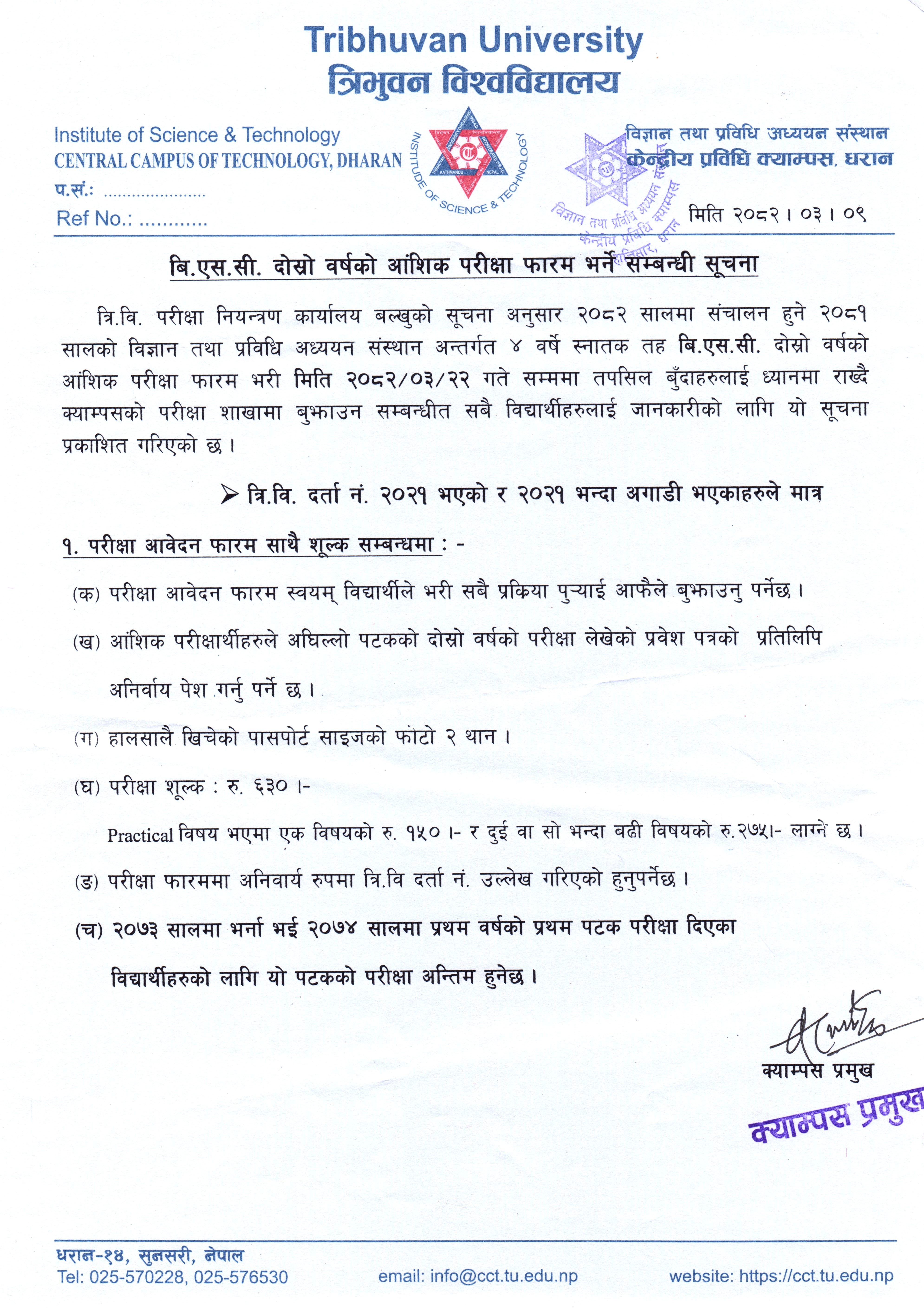 वि.एस.सी. दोस्रो वर्षको आंशिक परीक्षा फारम भर्ने सम्बन्धी सूचना ।