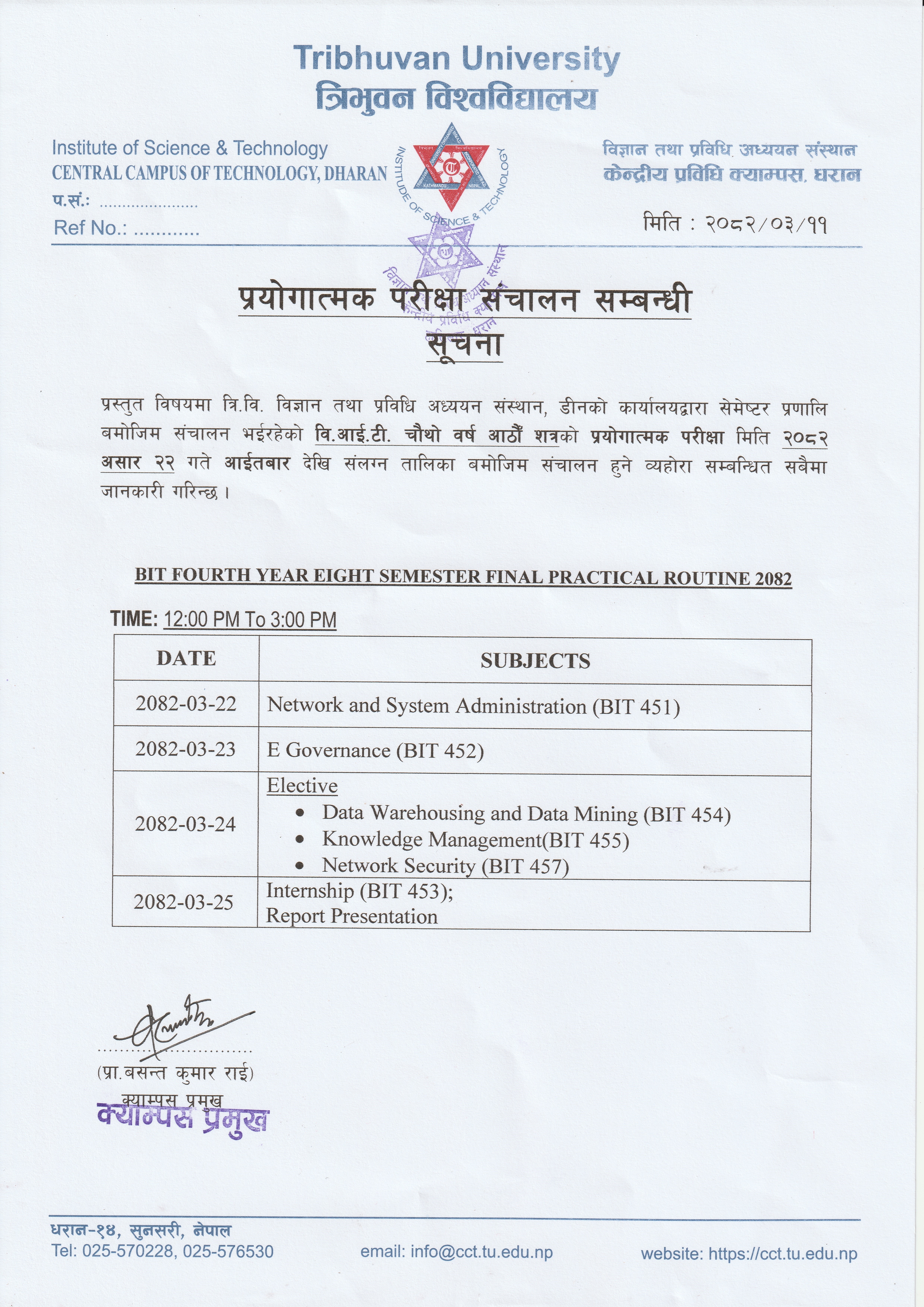 बि.एस्सी. तेश्रो वर्ष अन्तर्गत फिजिकल तथा वायोलोजी समुहको प्रि–बोर्ड परीक्षाको सूचना ।