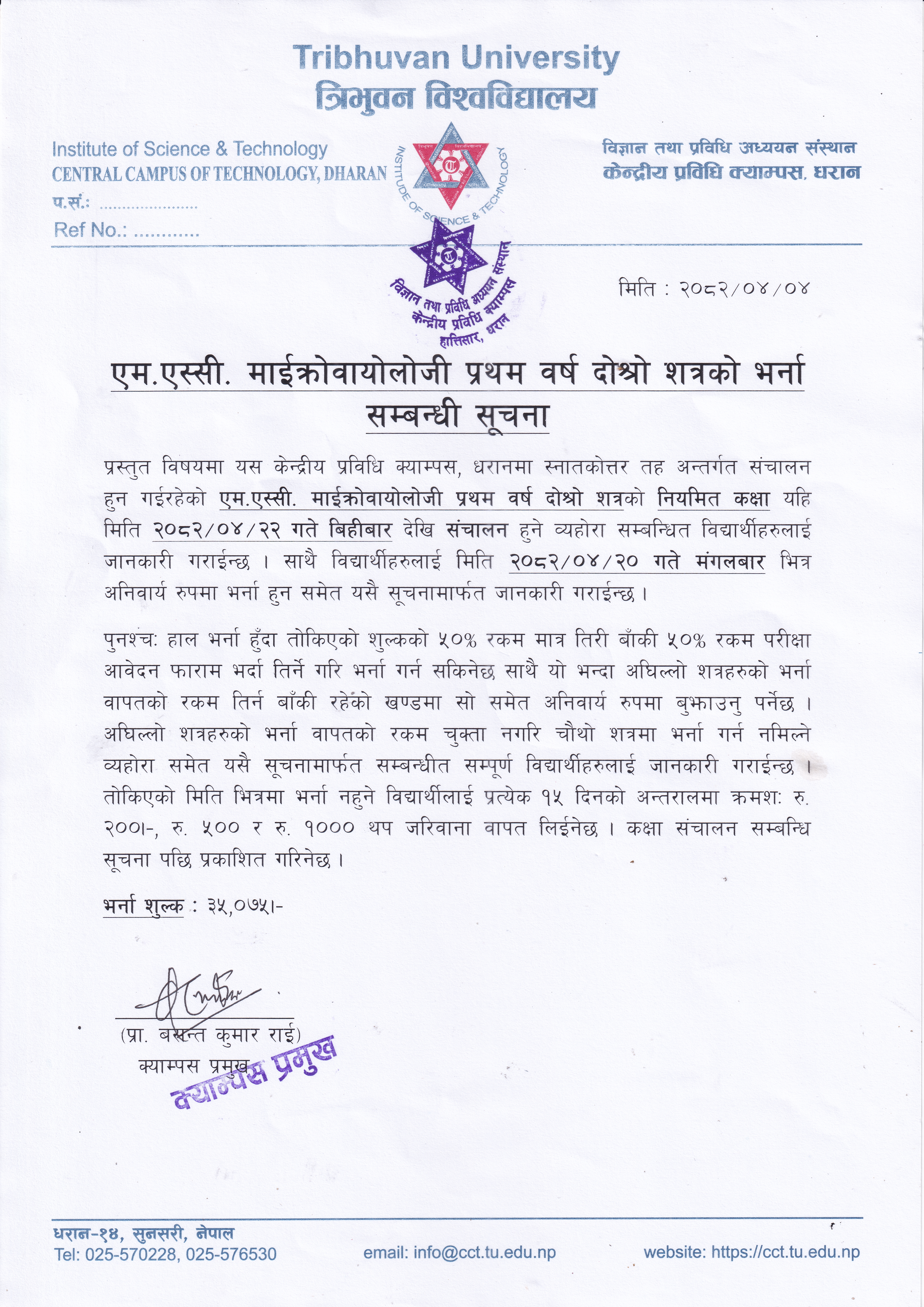 एम.एस्सी.माईक्रोबायोलोजी दोश्रो वर्ष तेश्रो शत्रको भर्ना सम्बन्धी सूचना २०८२