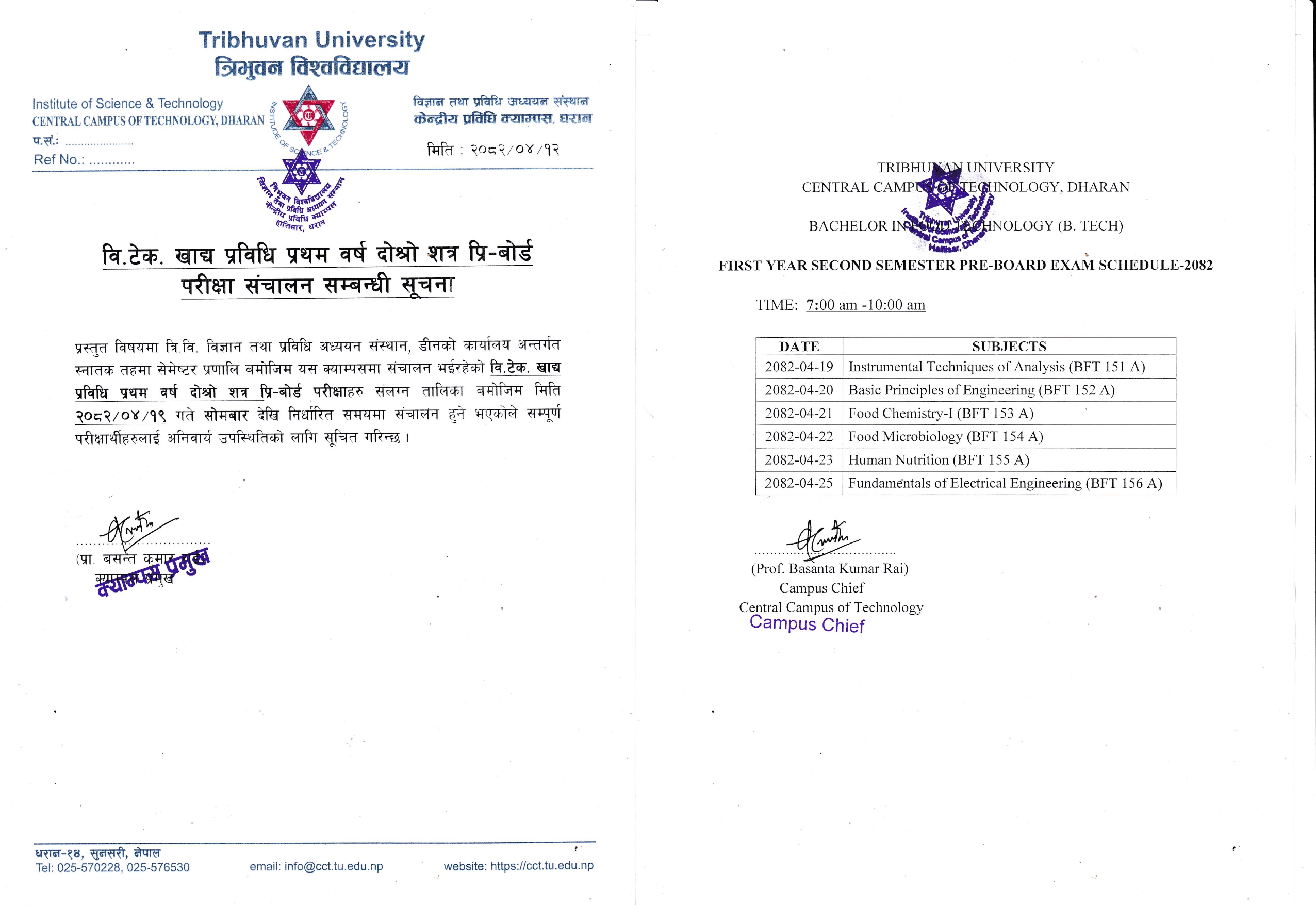 वि.टेक. खाद्य प्रविधि प्रथम वर्ष दोश्रो शत्र प्रि-बोर्ड परिक्षा संचालन सम्बन्धी सूचना ।