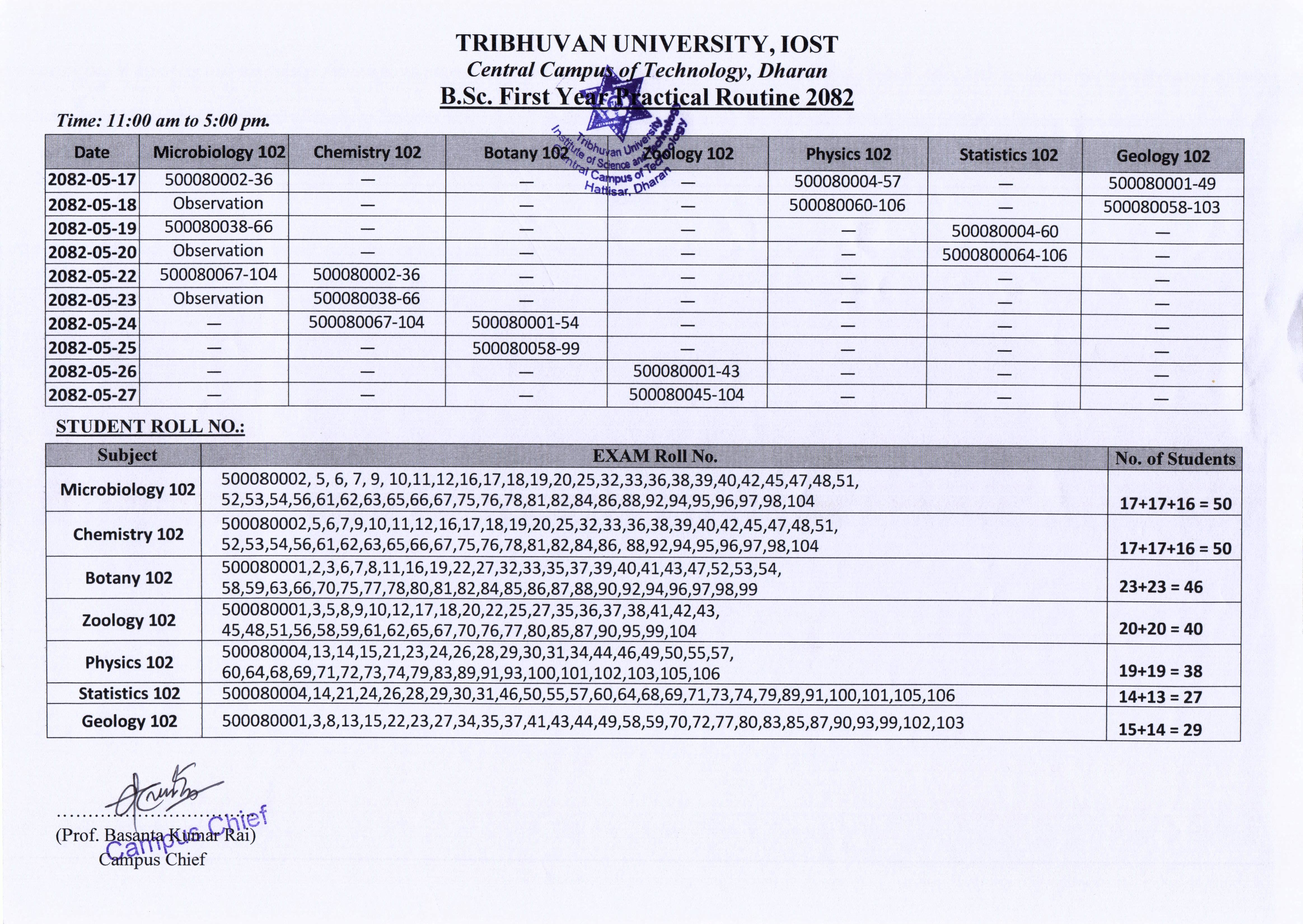 B.Sc. First Year Practical Routine 2082
