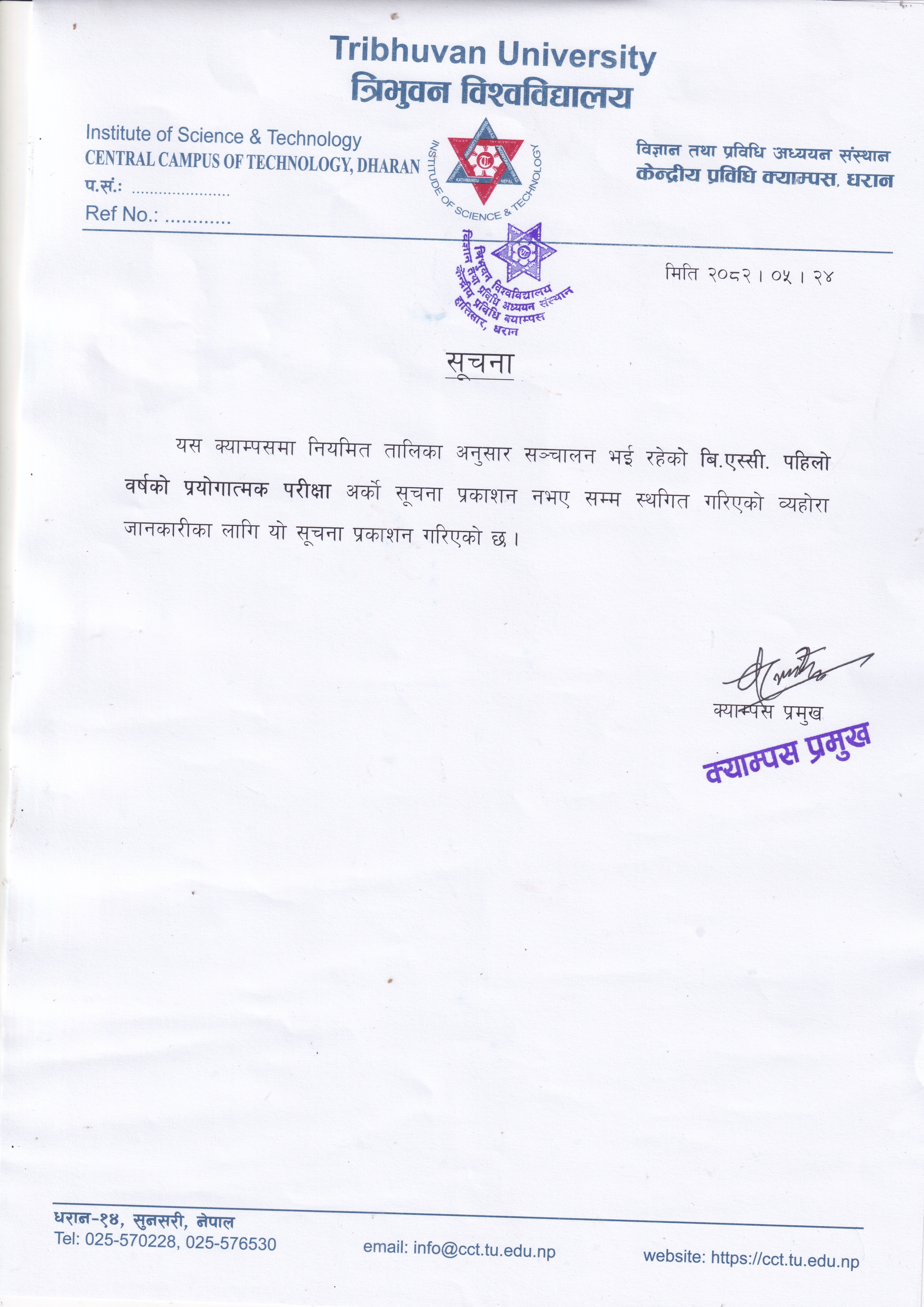 बि.एस्सी. पहिलो वर्षको प्रयोगात्मक परीक्षा स्थगित सम्बन्धी सूचना
