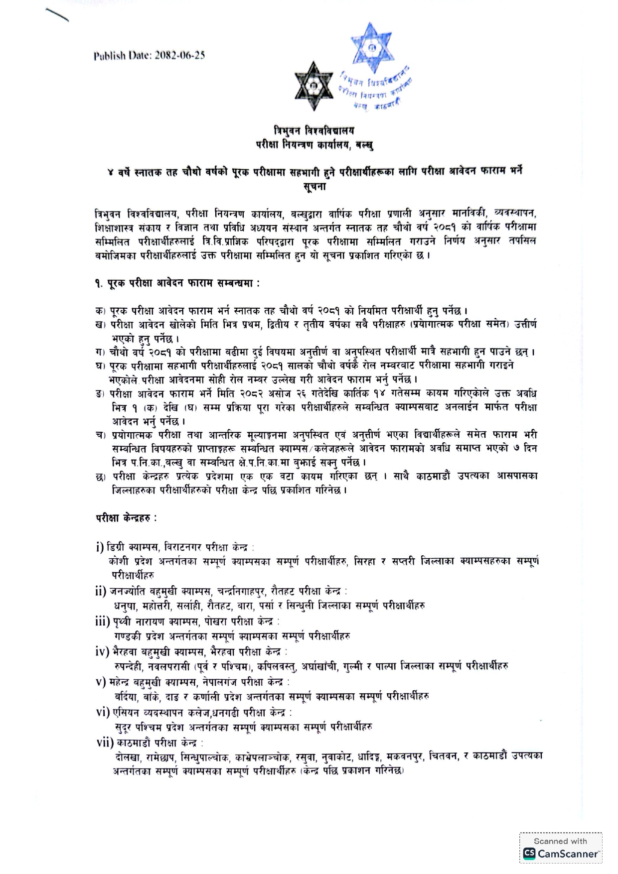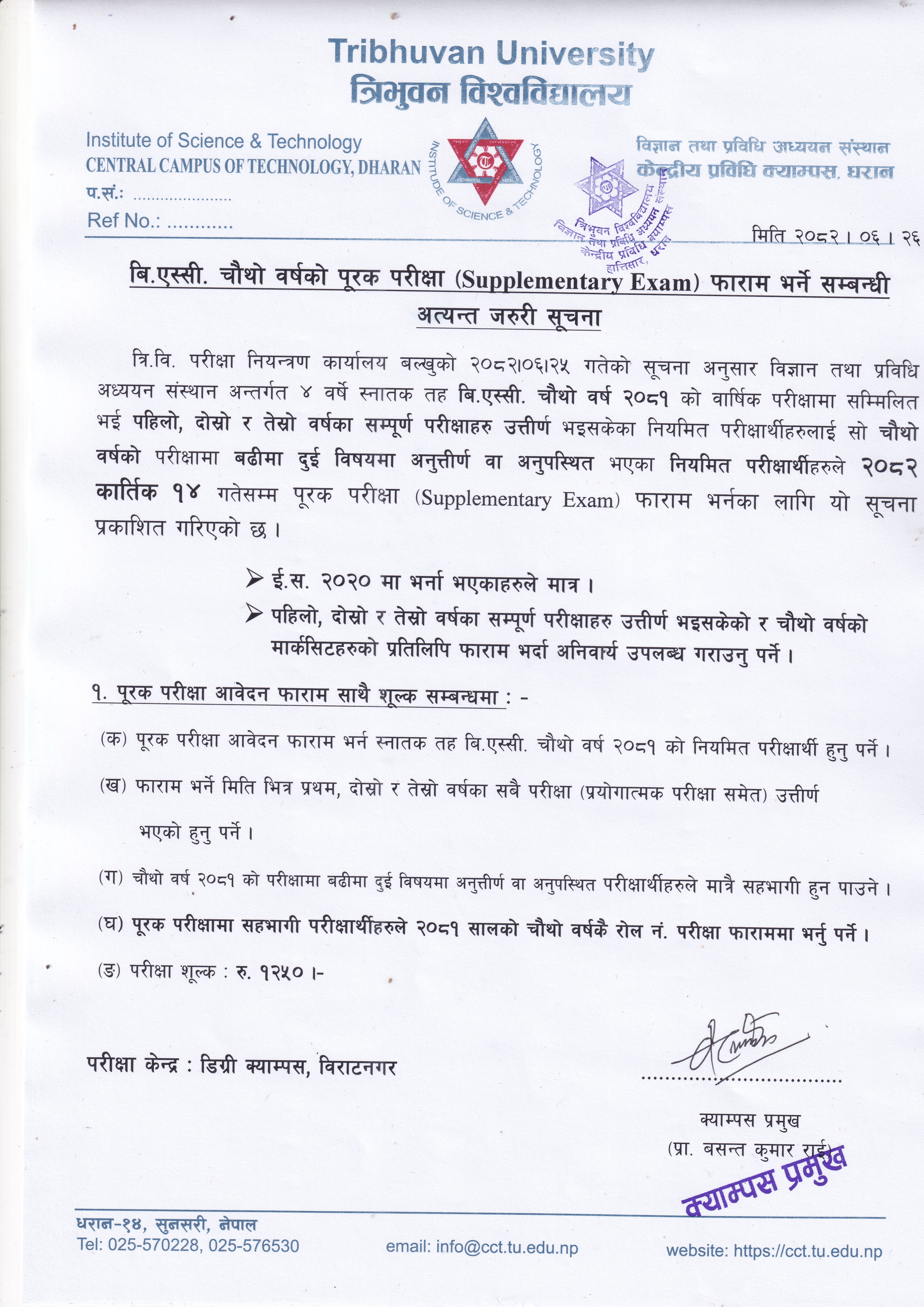 बि.एस्सी. चौथो वर्षको पुरक परीक्षा (Supplementary Exam) फाराम भर्ने सम्बन्धी अत्यन्त जरुरी सूचना