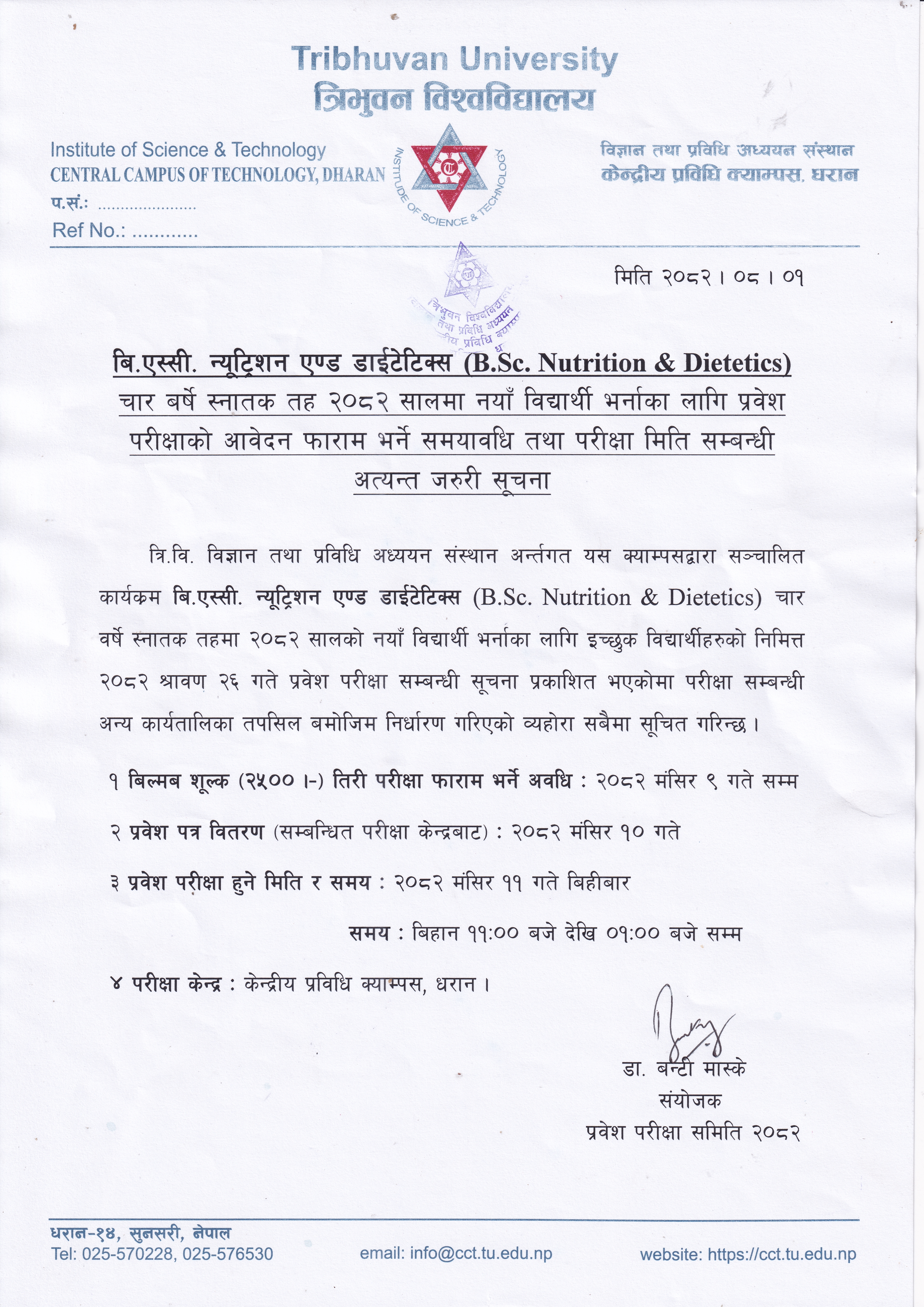 B.Sc. Nutrition and Dietetics Entrance - 2082 Notice