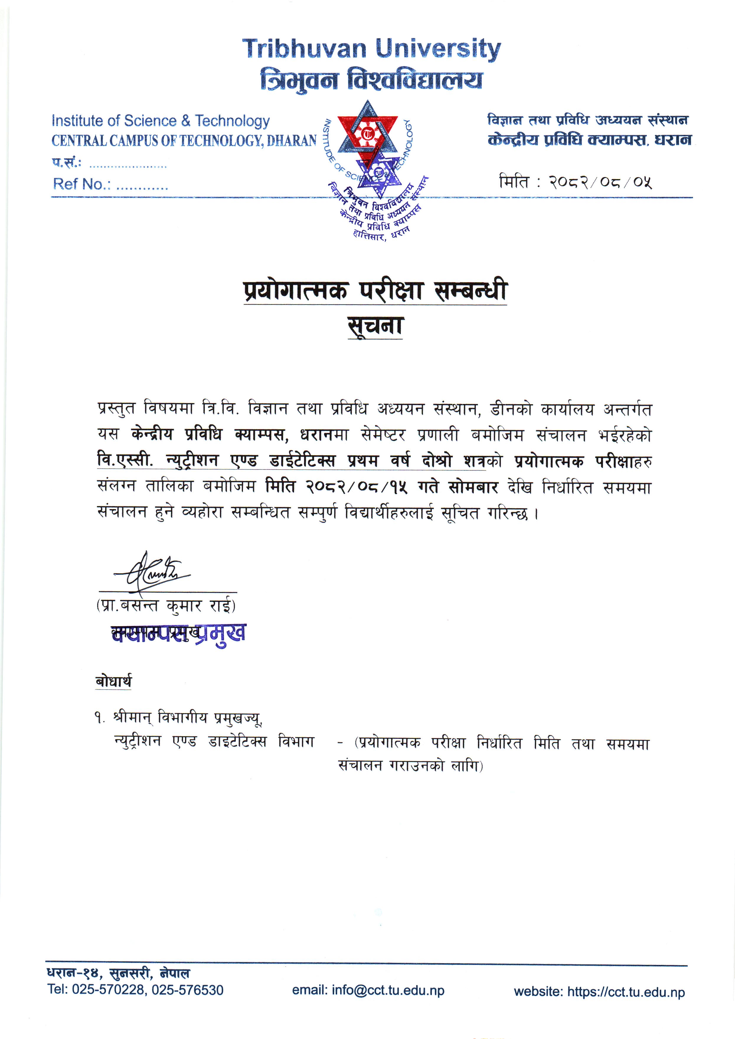 वि.एस्सी. न्युट्रीशन एण्ड डाईटेटिक्स प्रथम वर्ष दोश्रो शत्रको प्रयोगात्मक परीक्षा सम्बन्धी सूचना ।