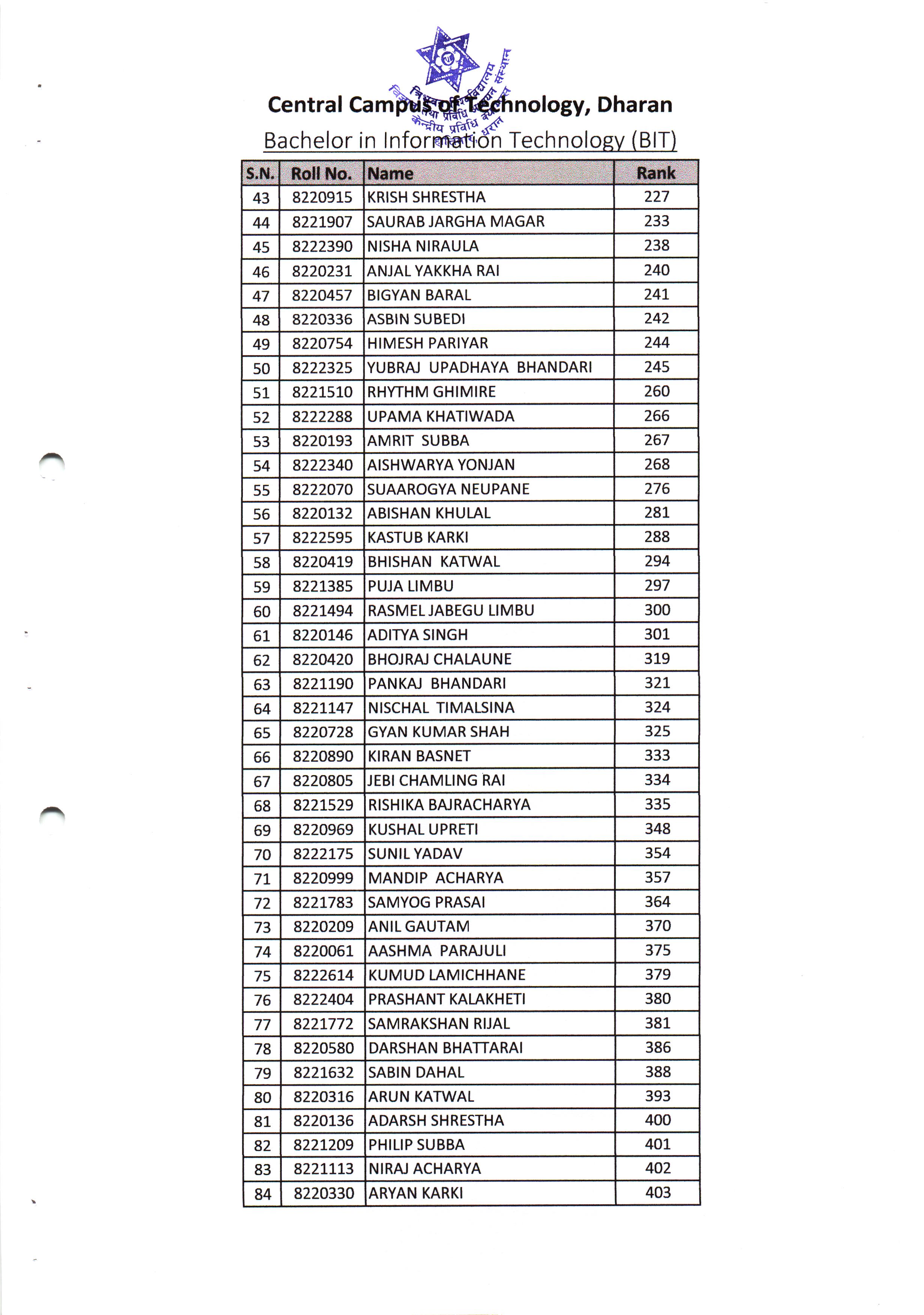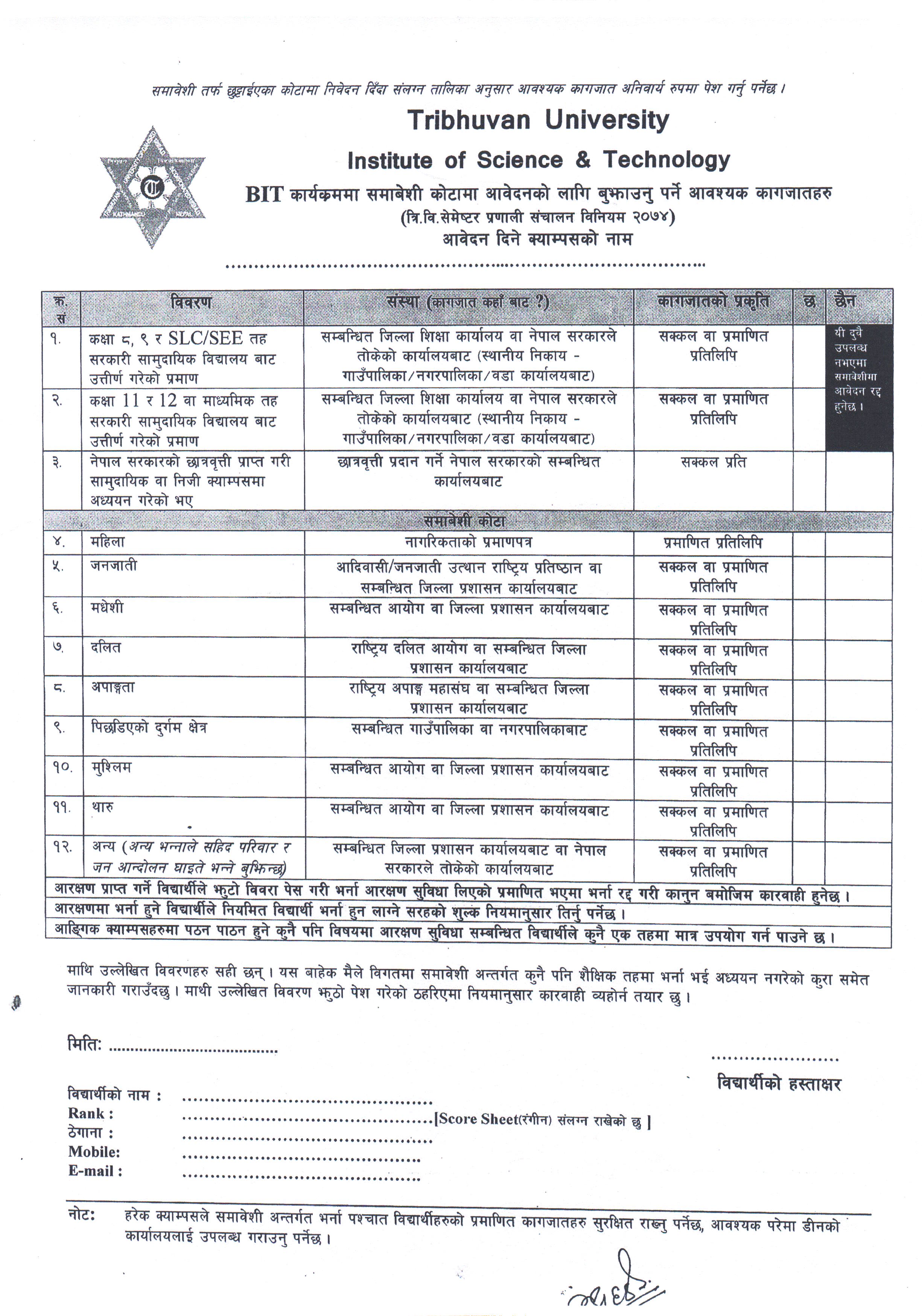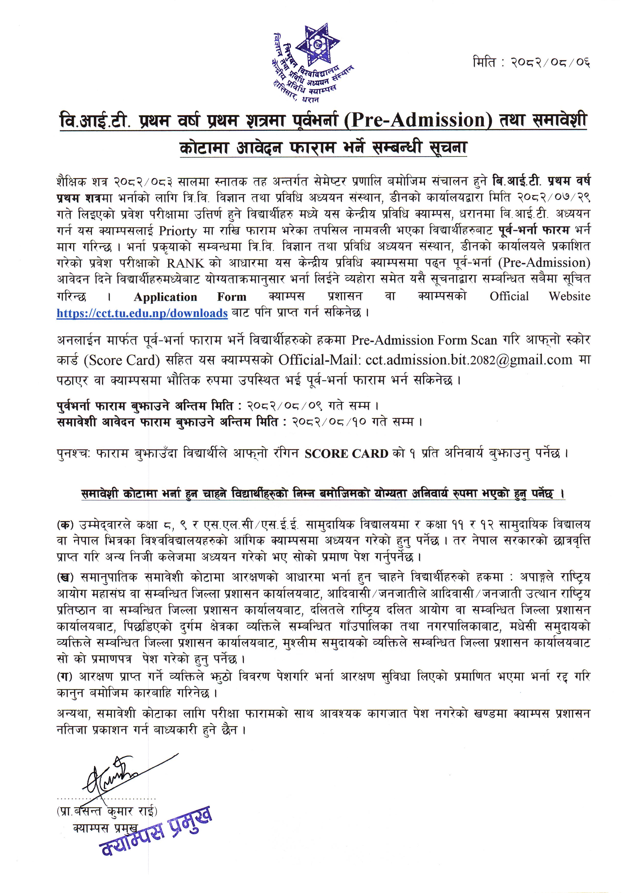 वि.आई.टी. प्रथम वर्ष प्रथम शत्रमा पूर्वभर्ना (Pre-Admission) तथा समावेशी कोटामा आवेदन फाराम भर्ने सम्बन्धी सूचना 2082
