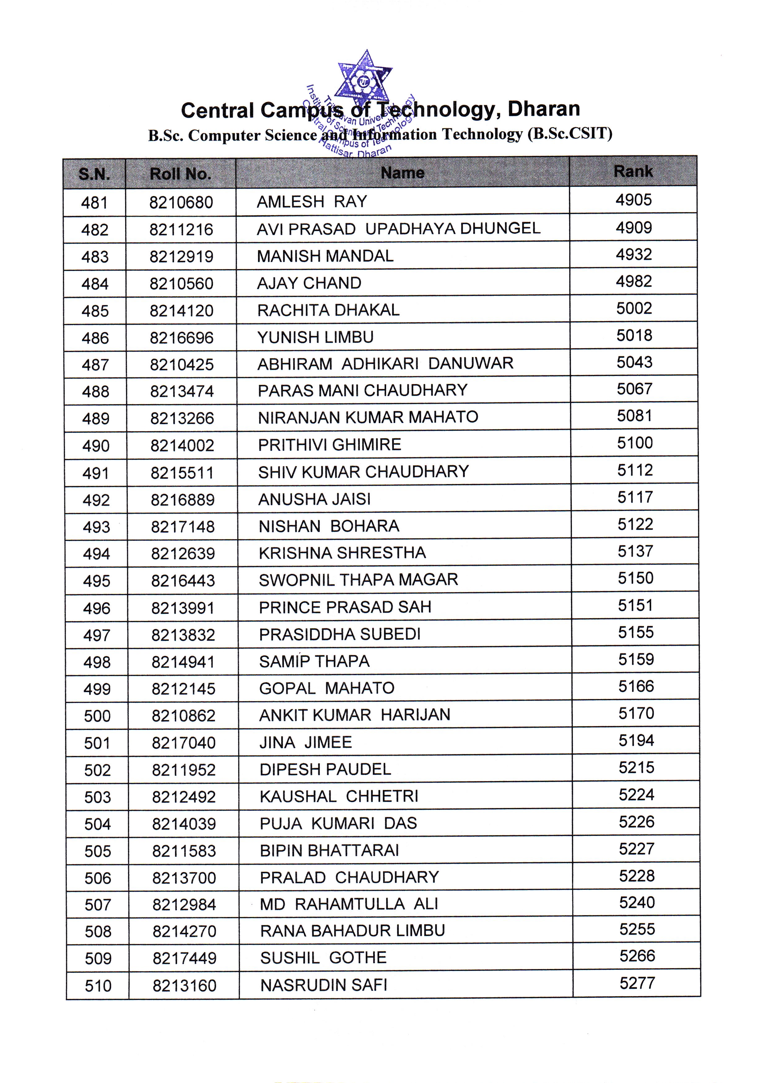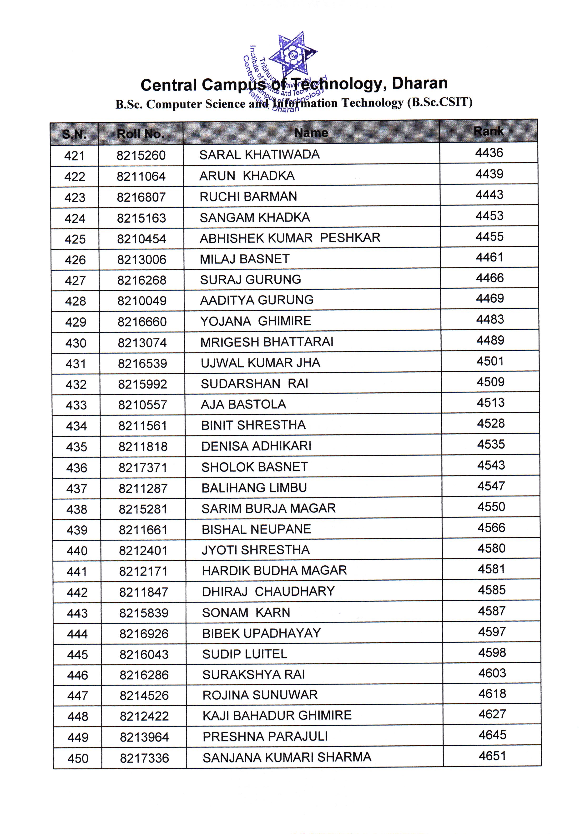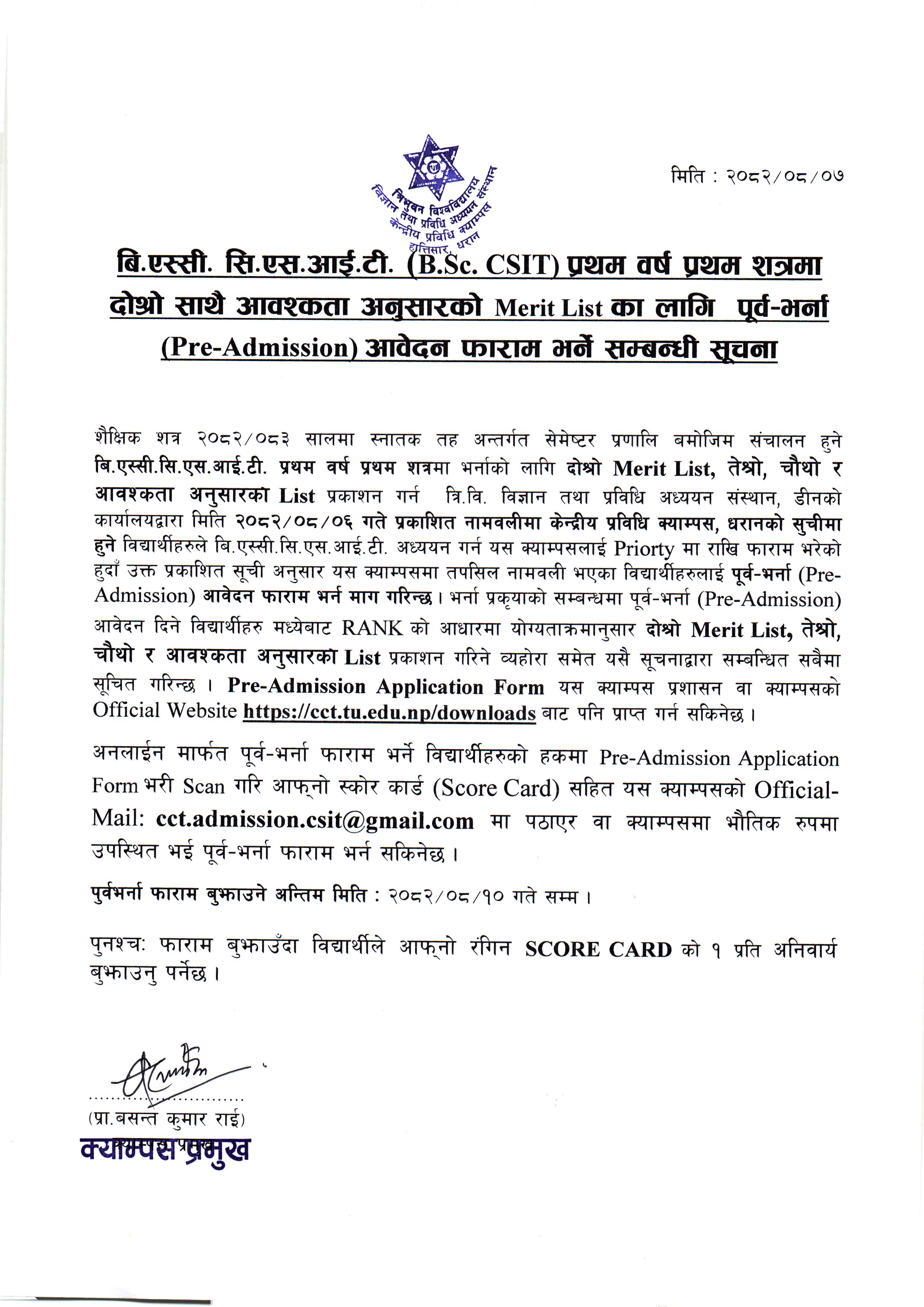 बि.एस्सी. सि.एस.आई.टी. (B.Sc. CSIT) प्रथम वर्ष प्रथम शत्रमा दोश्रो साथै आवश्कता अनुसारकोMerit List का लागि पूर्व–भर्ना (Pre-Admission) आवेदन फाराम भर्ने सम्बन्धी सूचना 2082