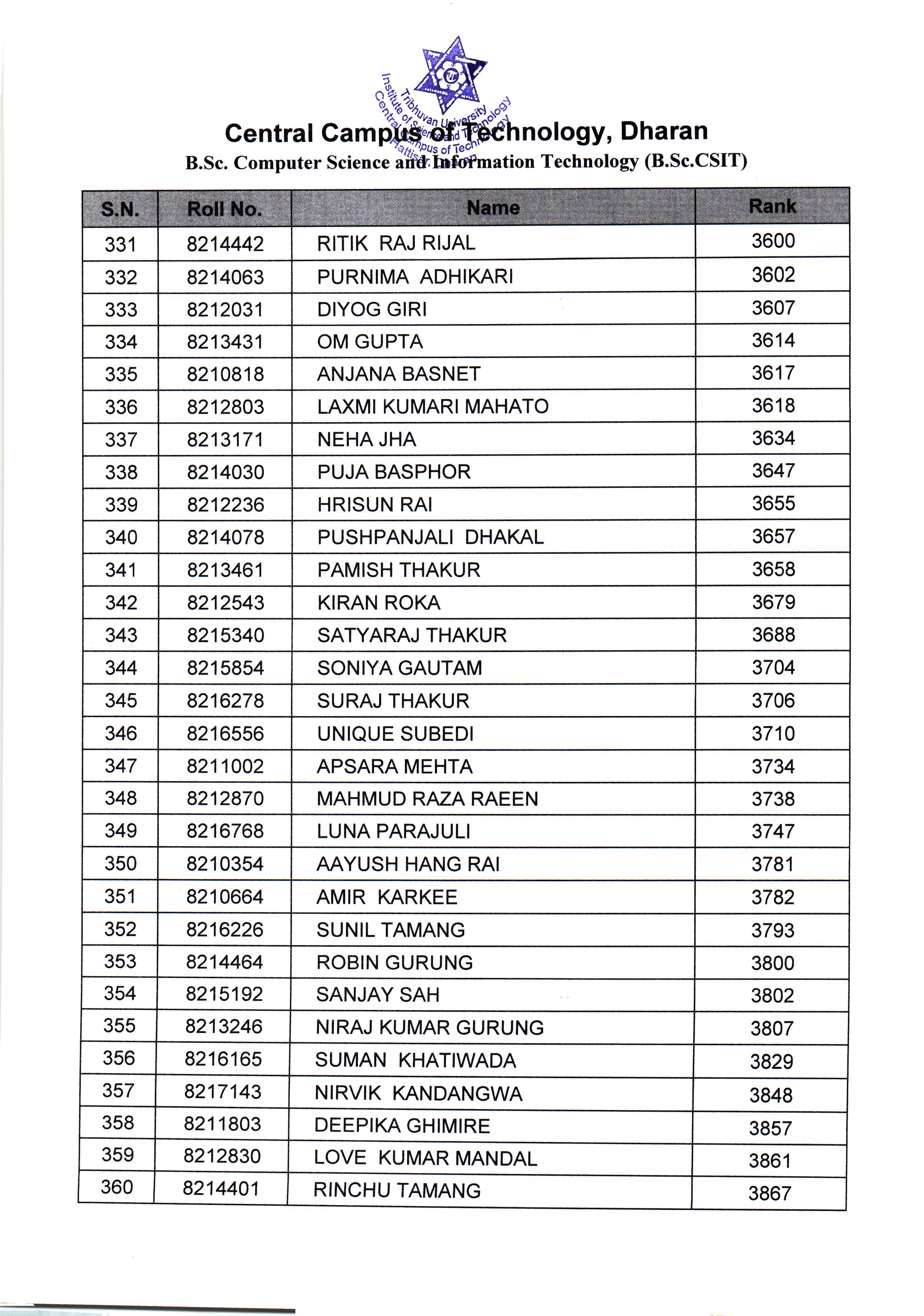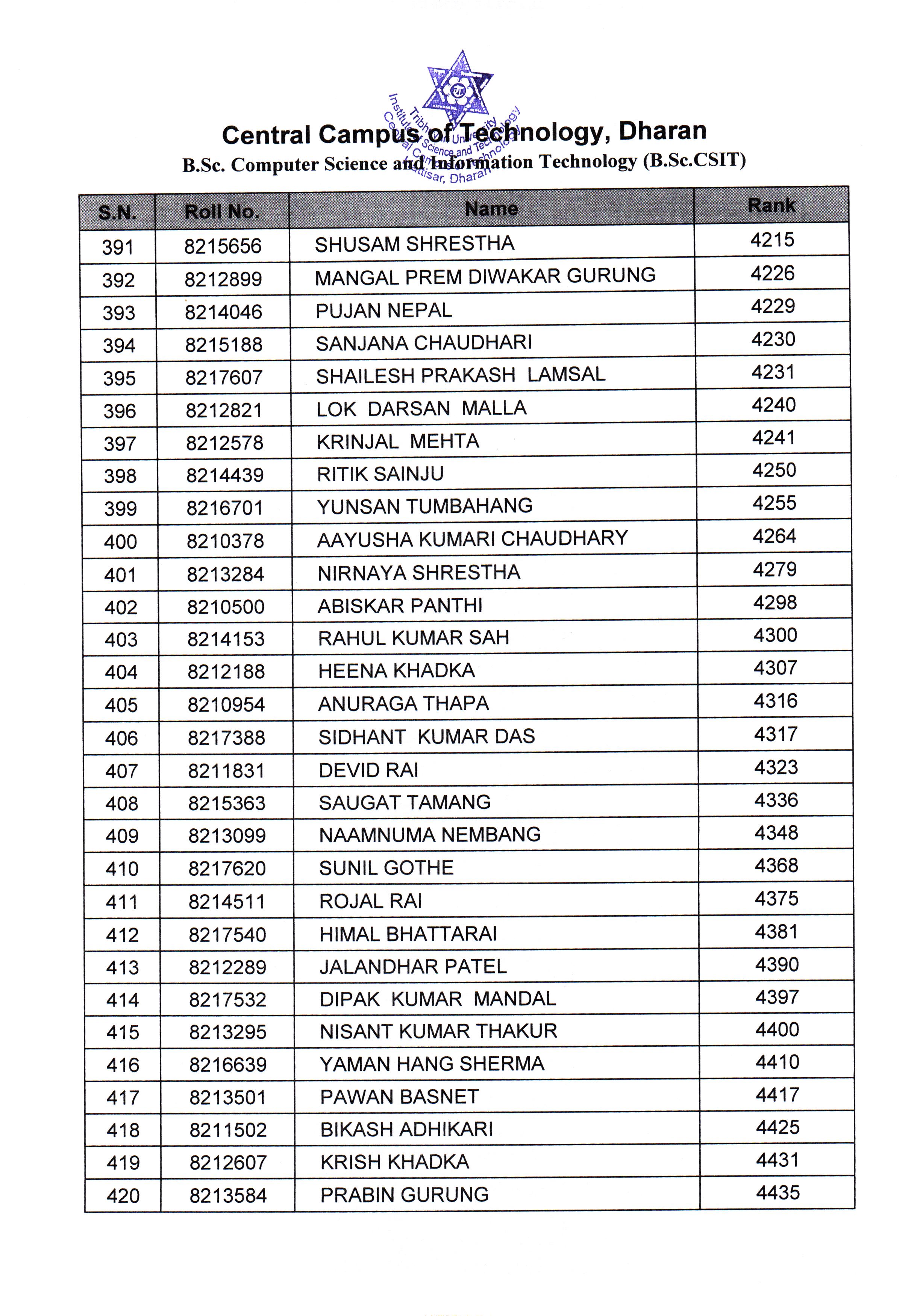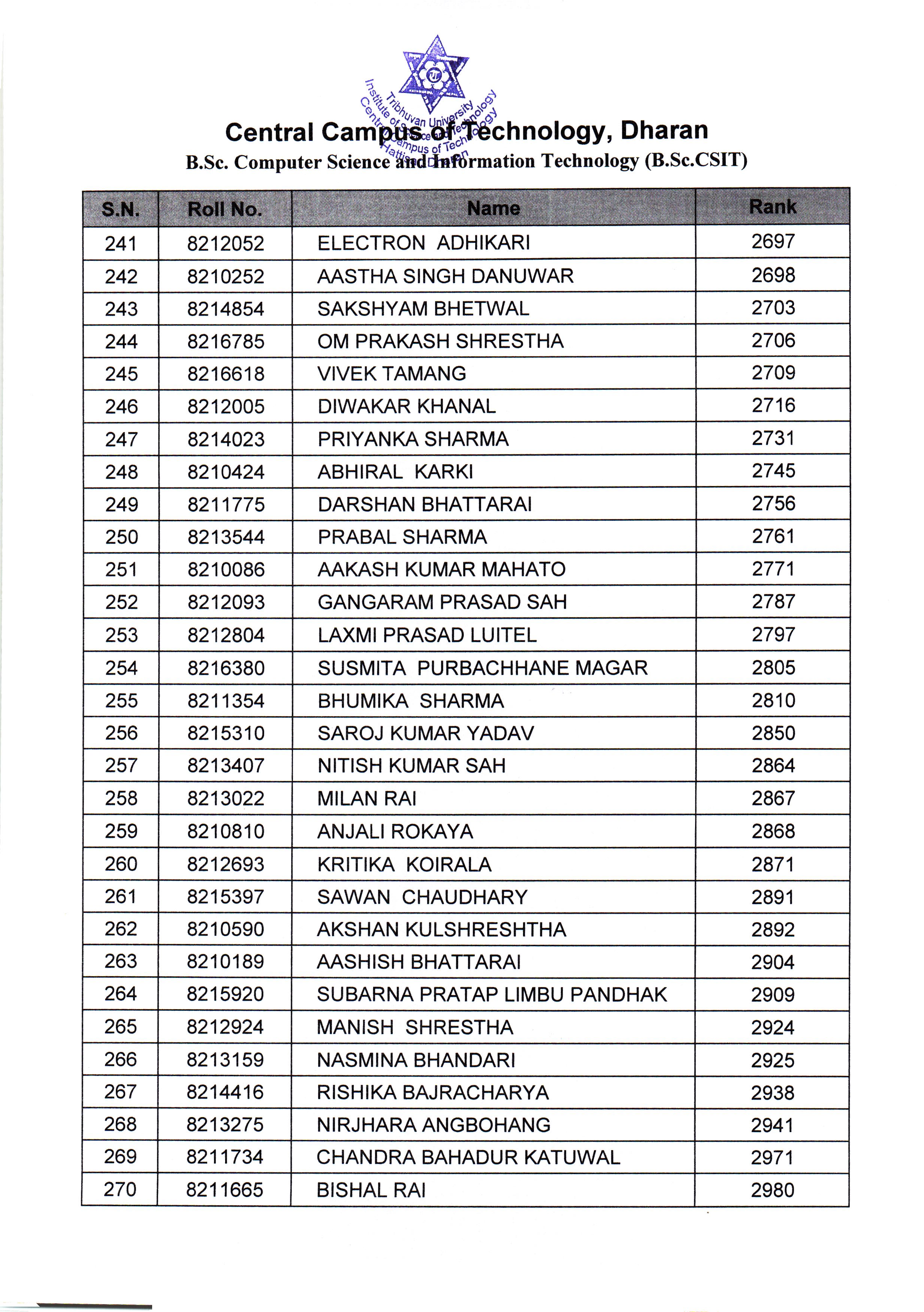 बि.एस्सी. सि.एस.आई.टी. (B.Sc. CSIT) प्रथम वर्ष प्रथम शत्रमा दोश्रो साथै आवश्कता अनुसारकोMerit List का लागि पूर्व–भर्ना (Pre-Admission) आवेदन फाराम भर्ने सम्बन्धी सूचना 2082